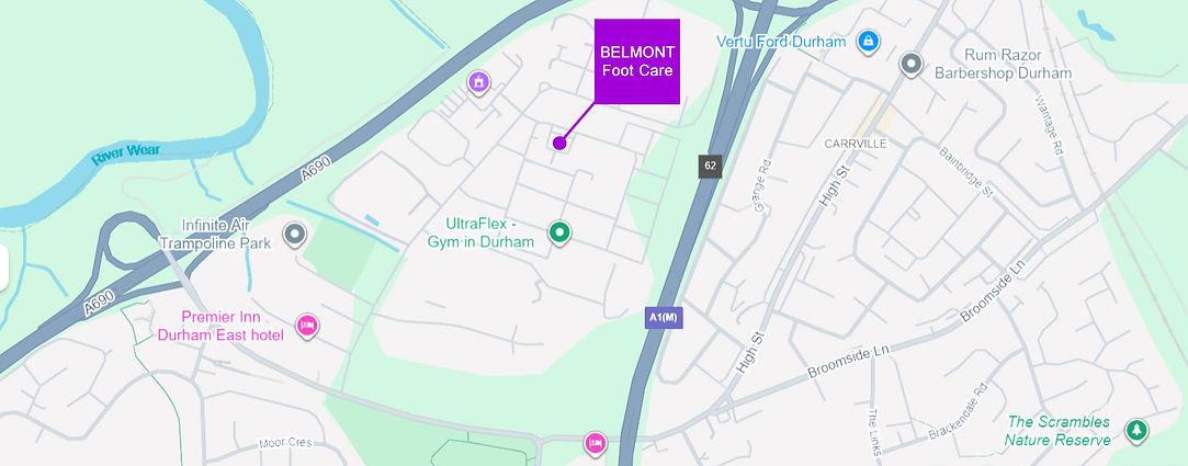 We have a dedicated parking space right next to the front door marked with a sign saying “Belmont Foot Care” on the kerb to the left of the building entrance. There is also disabled spaces to the right of the main entrance.